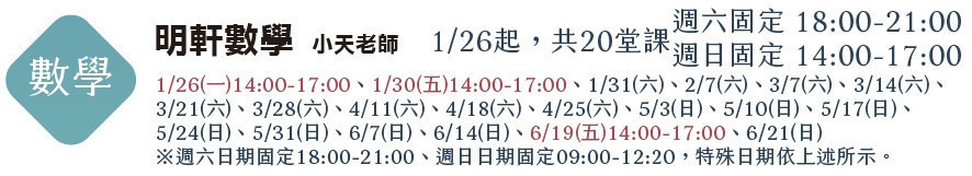 🔆開課時間: 1/26起 一期20堂,上課日期依下圖DM課表所示🔆